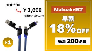 「Makuake(マクアケ)」は、実行者の想いを応援購入によって実現するアタラシイものやサービスのプラットフォームです。このページは、 プロダクトカテゴリの 「PCもスマホもこれ1本!100W高出力&超タフ設計の4in1充電ケーブル」プロジェクト詳細ページです。