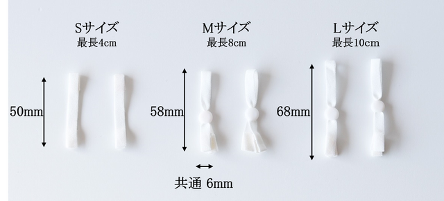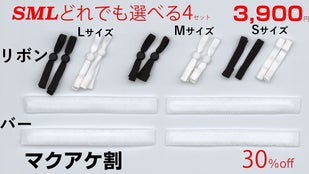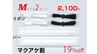 マスクプラスワンはSサイズ、Mサイズ、Lサイズがありストレッチリボンの色はホワイトかブラックをお選び頂けます。 複数セットでは、色は個別にお選び頂けます。