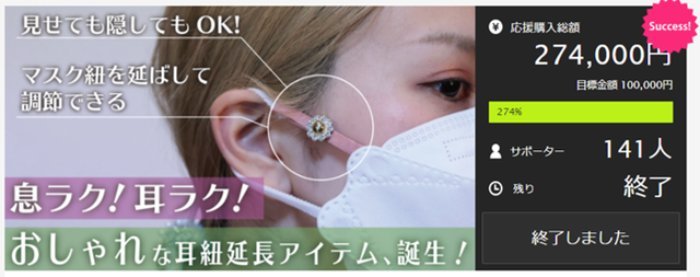 試行錯誤を繰り返しマスクプラスワンの第1弾が完成し、おしゃれを優先し装飾を付けてMakuakeに出品しました。