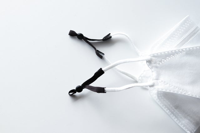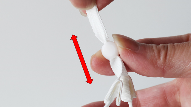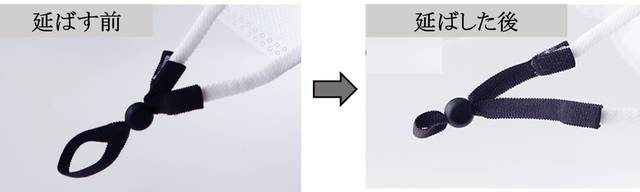 ※いちばん短い状態で装着しても緩すぎると感じる場合は、耳紐を少し切って調節してください。