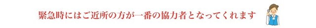 テルケアは「地域密着型」を大切にしたいと思い、なるべくご近所の方や地域の公共団体などに緊急時の協力をお願いしています。