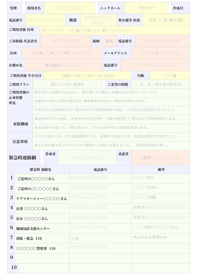 サービス計画書 作成時に 緊急時連絡網 を作成し、ご利用者様が「緊急を要する事態」となった場合に