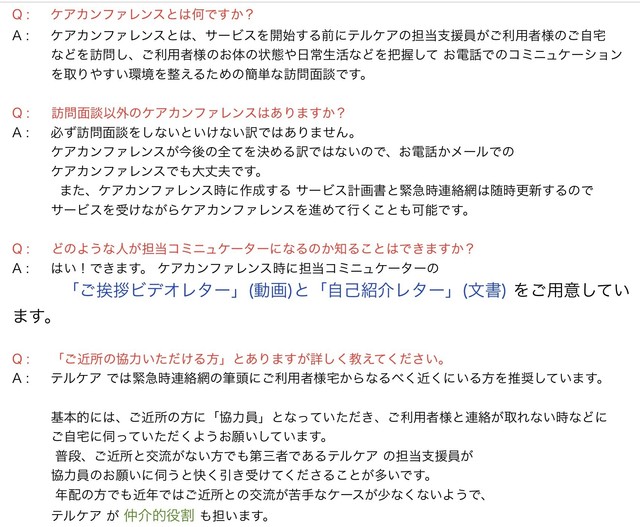 テルケア は他の類似サービスには無い サービス開始前の打合せ・サービス計画書作成・ご近所等の協力員認定・緊急時連絡網の作成を行い地域密着力、コミニュケーション力、緊急時対応力の三本柱で高齢者を守ります!
