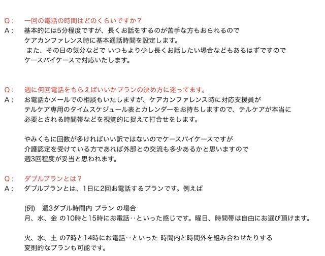 3⃣数分間お話しして問題がなければ次回のお電話の約束などをしてサービス終了。(希望者はご家族様に報告メールをします)