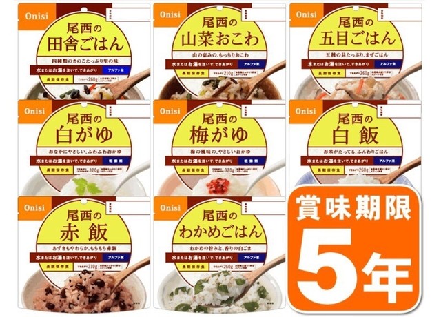 ■尾西食品の賞味期限5年アルファ米使用非常食を3食!