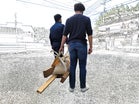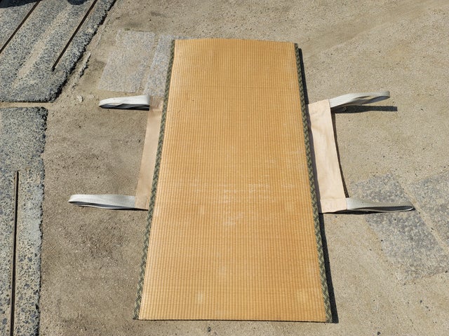 自分自身、水害ゴミで大変だったのが『畳』(この他にも、タンスなどの大型家具も大変でしたが)で、水を含んで超重量物化します。特にこの畳を運び出す際には水分を含むことによって畳がしなったり、手で持つところが滑って持ち難かったりと悪戦苦闘しました。この大変な片付け作業から、この畳を直接持つのではなく、持ち手のあるシートを用意することで、簡単に持ち運ぶことができるのではないか。思い、形にしたのが『てもっち君』です。