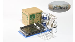 完成した『手持ち運搬シート てもっち君』と備蓄ができる『10年保証トイレットペーパー』を提供。