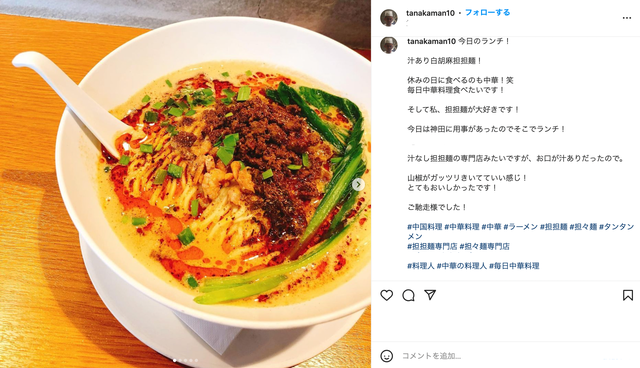 自分、本当に1日に1回は中華を食べないと気が済まないんです。だから自分で家で作るものももちろん中華だし、外食もほとんど中華しか行かない。インスタグラムも中華料理の写真ばかり。