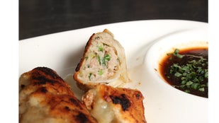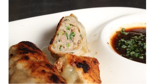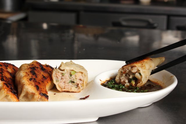 坦坦麺に負けず劣らずこだわり抜いた、看板メニューの肉汁餃子。ひとくち口にすると溢れ出す肉汁。餃子の皮は20種類の皮から厳選。大判で、モチモチの、肉汁餃子にピッタリの皮を選びました。