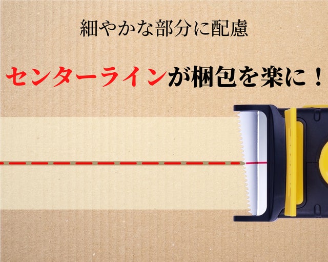 テープをまっすぐ貼るのが苦手な方いますよね?刃に印字された赤のガイドラインを使って貼り直し防止!