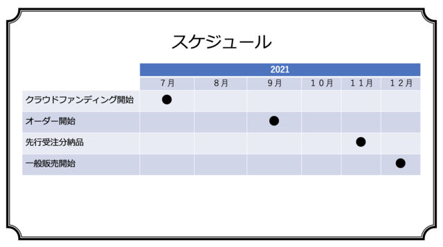 このプロジェクトはAll in型です。目標金額の達成に関わらず、プロジェクト終了日の2021年09月29日までに支払いを完了した時点で購入が成立します。