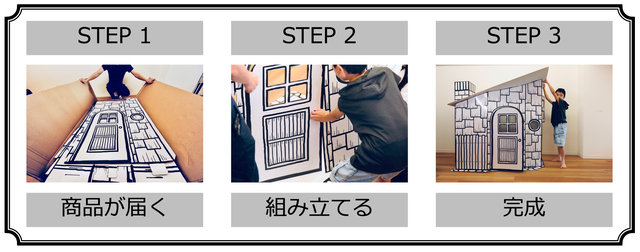 ・クラウドファンディング終了後に、販売価格が変更になる場合があるかもしれません。 ・皆様のご支援により量産効率が向上した場合、正規販売価格が販売予定価格より下がる可能性もございます。 ・納期は2021年11月頃と想定しております。万が一それ以降になる場合は、すぐにお知らせいたします。 ・ご支援後、ご支援者様都合によるキャンセルや返金は受付いたしませんので、ご了承ください。 ◾注意事項 ・商品写真はできる限り実物の色に近づけるよう加工しておりますが、お客様のお使いのモニター設定、お部屋の照明等により実際の商品と色味が異なる場合がございます。 ・高温の場所(加熱器、コンロなど)から一定の距離を保ち、高温の場所に置かないでください。 ・段ボール紙が軟化するのを避けるため、水洗いしないでください。 ・組み立てや遊戯時にダンボールの端や角でケガをしないように十分お気をつけ下さい。 ・初期不良以外の組立時の破損及び使用時の破損については責任は負いかねます。 ・本製品はお子様専用となるため、屋根に座ったり登ったり・物を置くなどの行為はおやめ下さい。