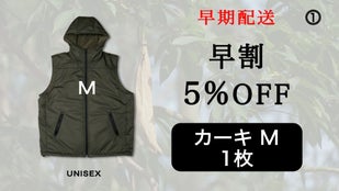 カーキ M【早割5%OFF】軽量・撥水ダウンベストx1枚 通常配送