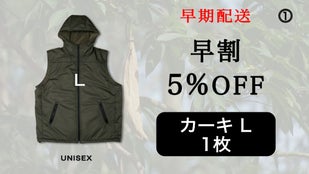 カーキ L【早割5%OFF】軽量・撥水ダウンベストx1枚 早期配送
