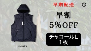 チャコール L【早割5%OFF】軽量・撥水ダウンベストx1枚 通常配送
