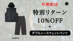 【特別リターン】軽量・撥水ダウンベスト+D・Kneeスウェットパンツ 早期配送