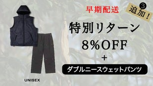 追加【特別リターン】軽量・撥水ダウンベスト+D・Kneeスウェットパンツ早期配送