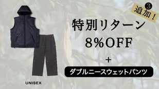 追加【特別リターン】軽量・撥水ダウンベスト+D・Kneeスウェットパンツ通常配送