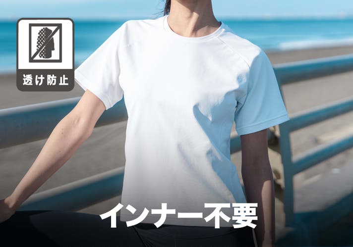 糸の特殊な構造により、もっとも透けが気になる「白」でもJIS基準「Aランク」の非常に高い防透け性能を持ち、男女問わず、透けを気にせず1枚で快適に着用できます。
