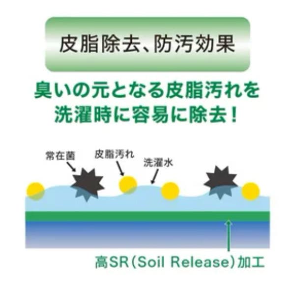 過酷な宇宙環境でも宇宙飛行士に快適な生活を提供する高レベルな消臭技術が、気になる臭いをしっかりガードします。さらに 高い防汚技術により、ニオイの元となるしつこい皮脂も洗濯で容易にリリース。ダブルの対策で高い臭いガード性能を発揮します。