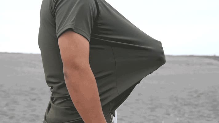 ※動画はTシャツに水を含ませた状態で検証しています。