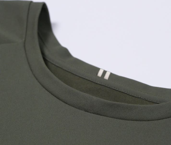 汗を気にせず快適に着用できるため、清潔感のある印象をキープ。さらに、これまで敬遠しがちだったカーキカラーも、汗染みを気にせず気軽に取り入れられます。
