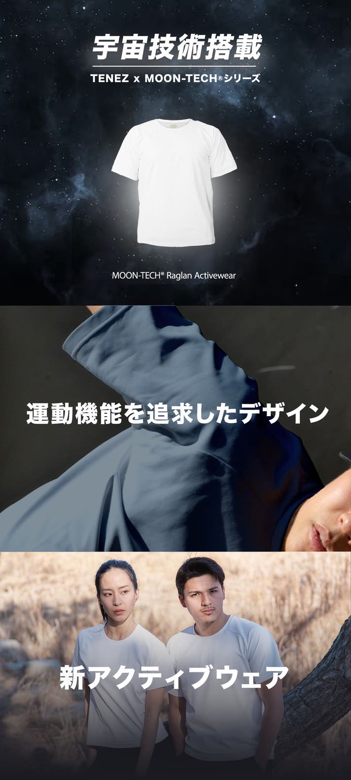 「TENEZ × MOON-TECH®︎シリーズ」は、日常とスポーツシーンに潜む“服の悩み”を根本から解決し、あなたのアクティブな毎日を、清潔感ある豊かなものへと変えます。