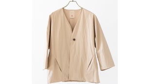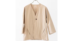 Tシャツでもシャツでも、タートルネックのセーターでも、どんなインナーにもハマるノーカラーの羽織。コットンタイプライター生地は肌触りもよくオールシーズン使えて、少し肌寒い時に羽織るのにちょうどいい。