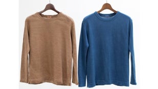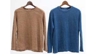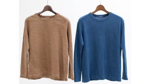 今回の「ホカホカヘンプメリノTee」は、藍と柿渋の2色です。