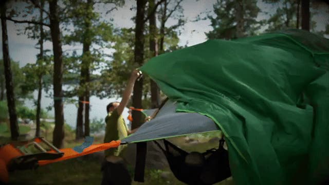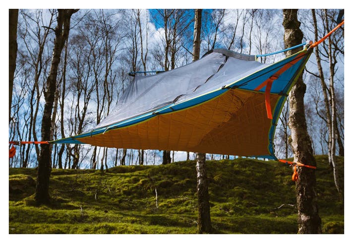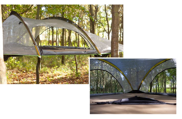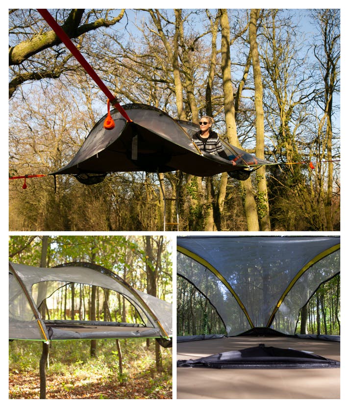 - 【圧倒的存在感】新発想!テントを浮かべる。必要なのは3本の木のみ。まさに持ち運べるツリーハウス