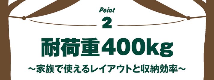 耐荷重400kgの強度は、お父さん・お母さん・お子さんの3人に、荷物を載せても問題ありません。