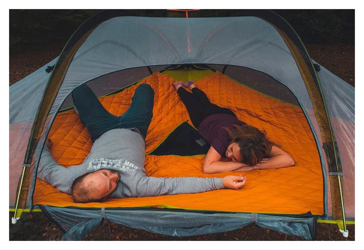 ハンモックのアンダーキルトのようにテント下に設置するのはもちろん、シルクのように柔らかな肌触りなのでクッション替わりにテント内にセットしてもOK。