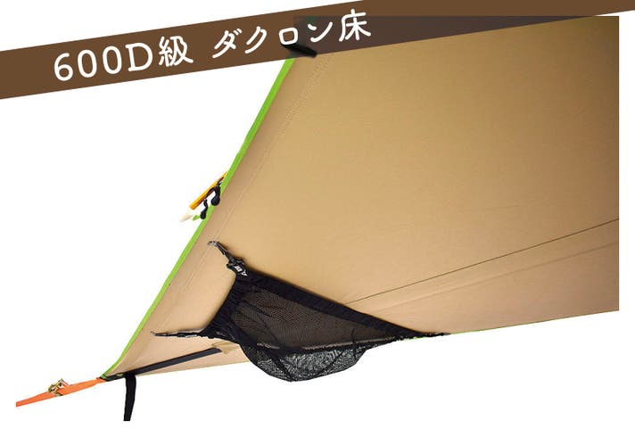 フロア/構造: 600Dダクロン床をシートベルト・ウェビングで補強し、張力で“フラット寄り”の寝心地を実現