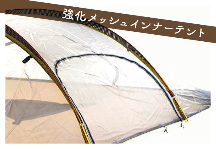 強化メッシュ加工されたインナーテントは、小さい虫の侵入もしっかりガードします。