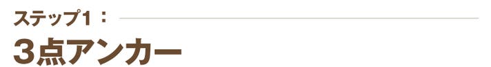 本の健康な木を選び、推奨設営高約1.2mを目安に3点アンカーの位置を決める。