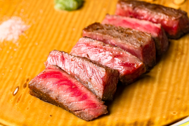 たとえば、鉄板焼きのメインとして登場する牛肉のステーキ。