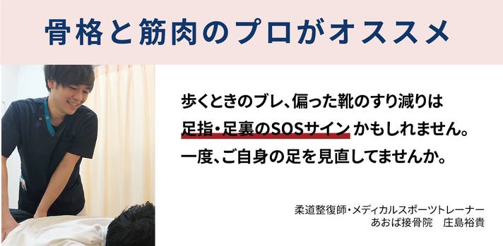 街を歩いていて、ふと自分の歩き姿が目に入り、慌てて姿勢を正そうとすることはありませんか?いい歩き姿勢をつくるためには、足指・足裏の支えが重要です。