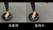 素足に本体を装着して使っていただくことも可能ですが、靴下やタイツ・ストッキングをはいて使用すると、フィット感があがり、ずれにくくなります。
