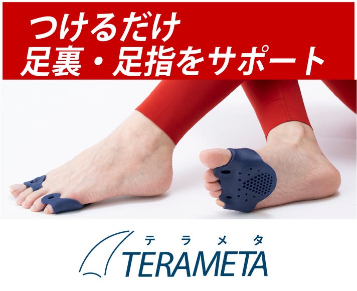 テラメタはつけるだけ足裏アーチが支えられ、踏ん張る力が上がります。歩く時にかかる衝撃が吸収されるので、ブレやバランスに違和感を感じる方、長時間歩くのがつらいと感じる方へぜひ使っていただきたいです。