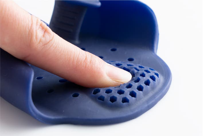 足に関する商品を多く企画してまいりましたが、今回はシリコン製のぷにぷに、ぷるぷるの素材感にこだわりました。クッション性にも優れており、使った瞬間に足へかかる衝撃が軽減できるため、使ってすぐに体感を得ていただけると思います。