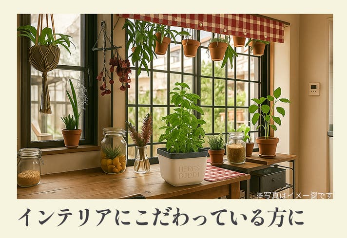 ベランダやリビングだけでなく、キッチンに置いても違和感なく映え、「育てること」が暮らしの中の楽しみやインテリアの一部になる、そんな存在です。