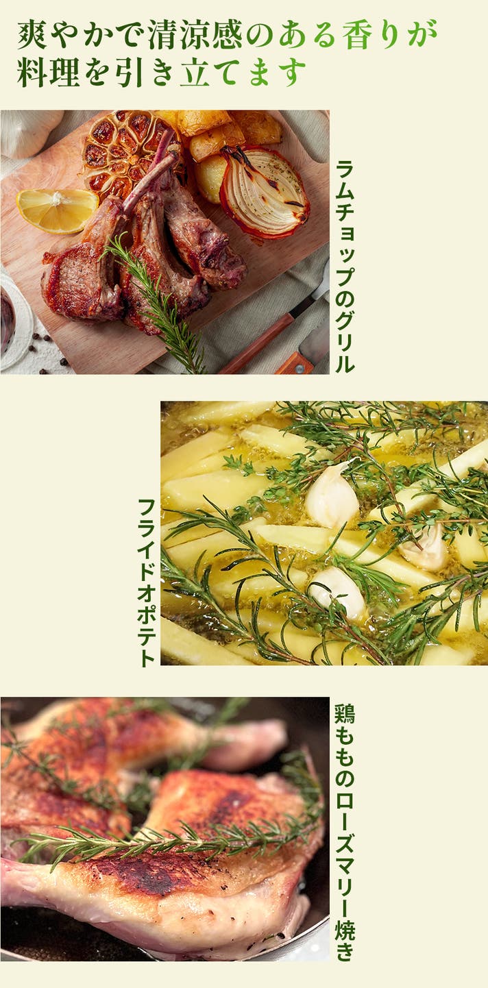 パスタやチキンソテーなど、いつもの料理に少しのハーブを添えるだけで、カフェのような一皿に。友人を招いたおもてなし料理にもぴったりです。