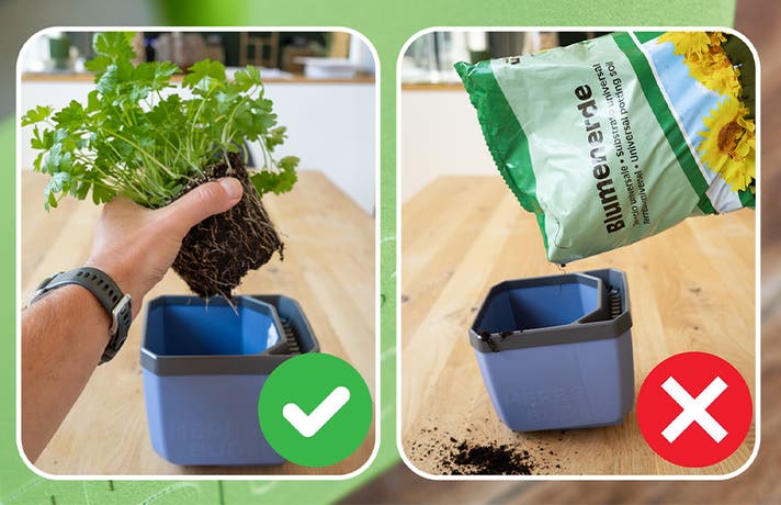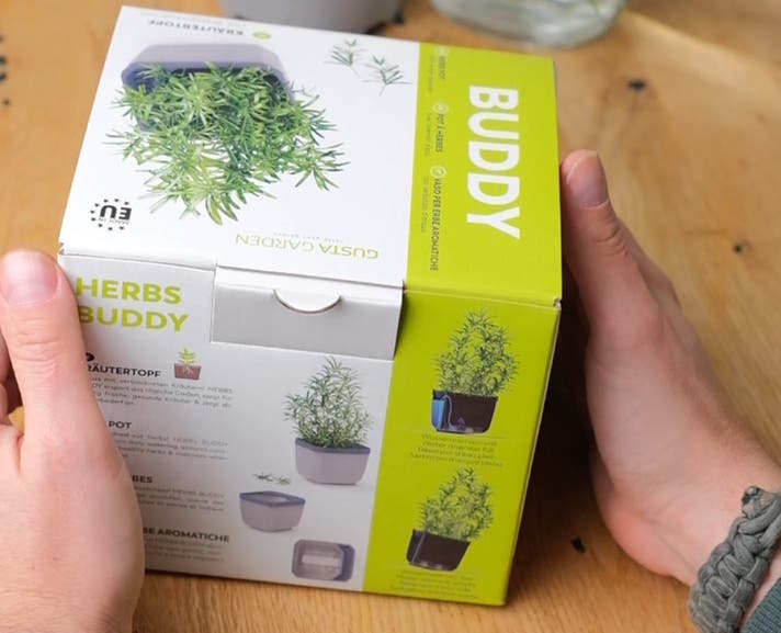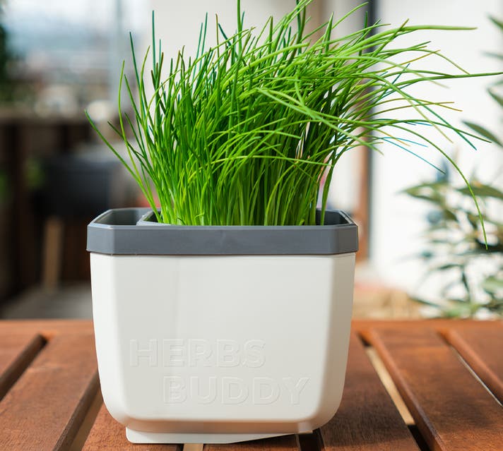 A. この「HERBS BUDDY」は、鉢植えされたハーブやスーパーで買ったハーブをセットして使う仕組みで、土を入れて種からそのまま栽培するようには設計されていません。種から育てたい場合は、まず種を購入して、発芽・苗の状態まで育て、その後でHERBS BUDDYに移し替えるという流れになります。