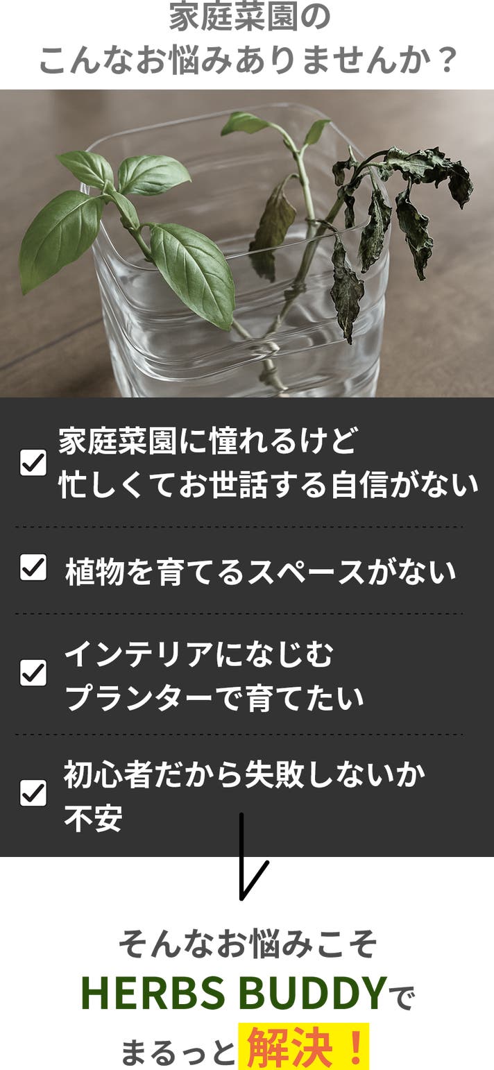 手軽にはじめられて、毎日の食卓がちょっと楽しくなる。そんな新しい家庭菜園スタイルが、HERBS BUDDYで叶います。