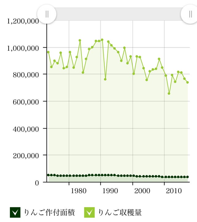 農林水産省による統計の通り、全国で見てもりんごの栽培面積・収穫量ともに減少傾向にあります。
