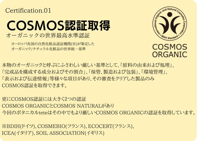 だからこそ、私たちは世界でも厳格なオーガニック統一基準のある、ヨーロッパの国際認証をはじめとする厳しい認証をクリアする事にこだわりました。