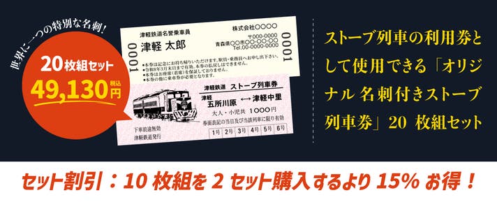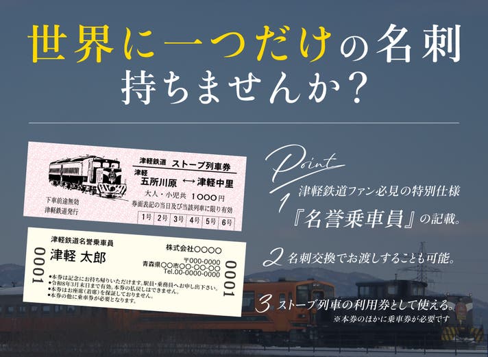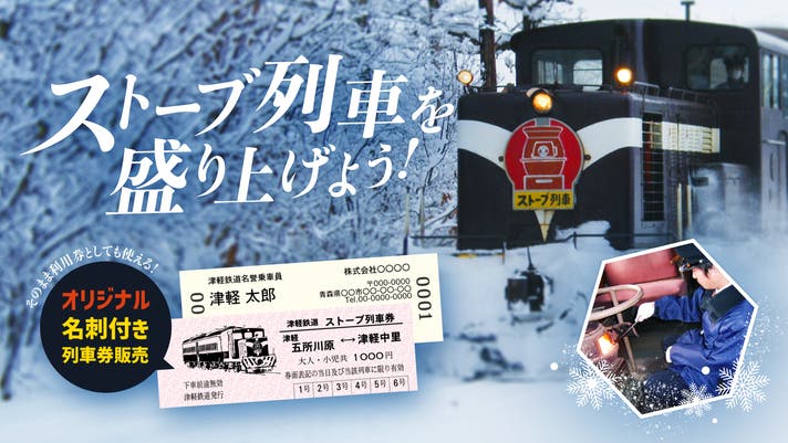 青森の冬を彩る風物詩、津軽鉄道オリジナル名刺付きストーブ列車券を販売するプロジェクトです 。