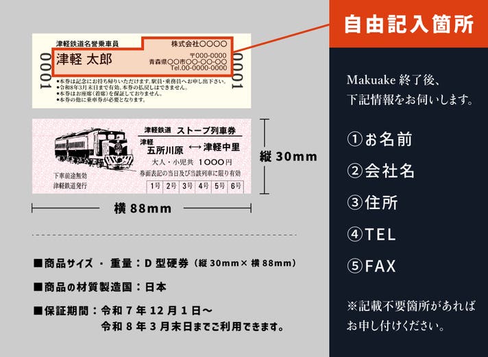 - 【名誉乗車員】青森の冬を彩る風物詩!津軽鉄道オリジナル名刺付きストーブ列車利用券の特別仕様