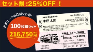 ストーブ列車の利用券として使用できる「オリジナル名刺付きストーブ列車券」100枚