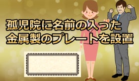 ・あなたの名前(会社名やメッセージもOK)が入った金属製のプレートを最大支援者とわかるように孤児院に設置